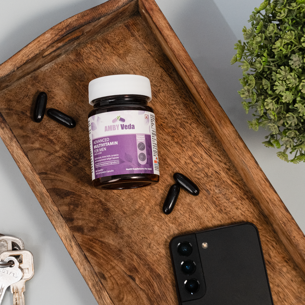 Ambyveda Advanced Multivitamin for Men Softgel Capsules are formulated to support men’s daily nutritional needs. Enriched with powerful antioxidants, amino acids, minerals, and herbal extracts, these capsules help promote energy, immunity, metabolism, and overall well-being—making them a smart addition to an active, healthy lifestyle.
