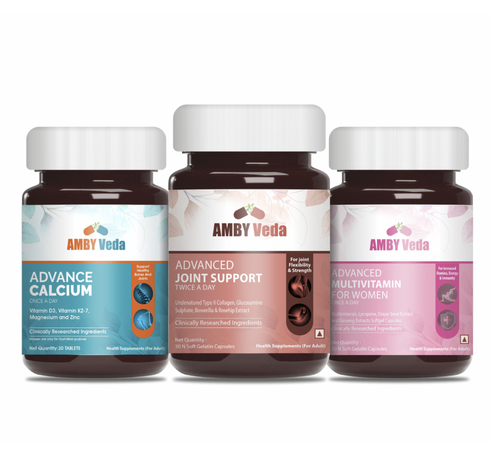 - Advanced Joint Support (1 Qty) + Advanced Multivitamin Women (1 Qty) + Advance Calcium, D3 & K2-7 (1 Qty)